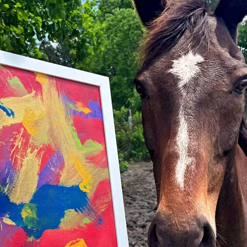 Конь в США рисует картины с помощью морковки. Хозяйка не поспевает за спросом