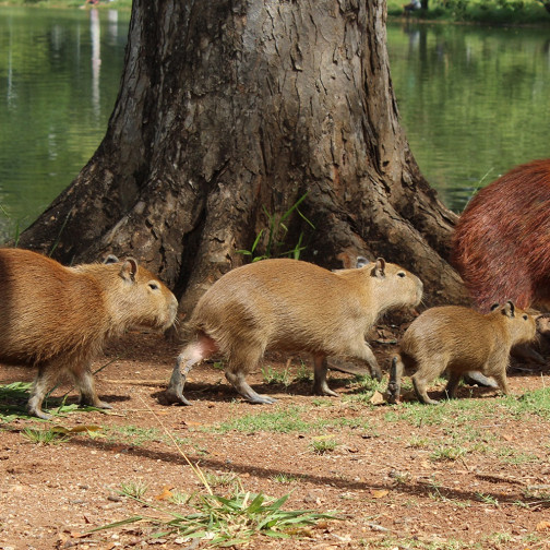 В Малайзии капибары из зоопарка усыновили бродячего кота. Теперь они живут в одном вольере