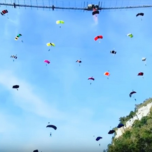 25 парашютистов одновременно прыгнули с подвесного моста в Сочи и установили мировой рекорд