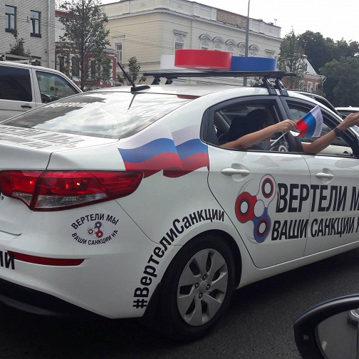 По Москве проехала колонна автомобилей с надписями «Вертели мы ваши санкции на»