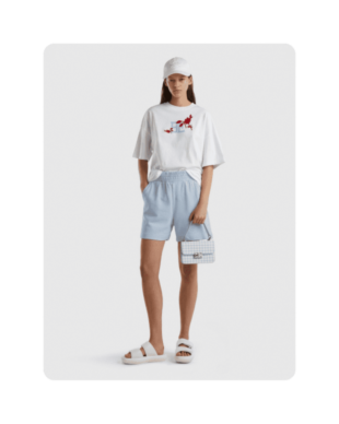 Один из наших любимых летних материалов: в льняных вещах не жарко, а еще они выглядят в по-хорошему расслабленно и нарядно, даже будучи слегка мятыми. К льняным шортам можно добавить рубашку из того же материала — у многих брендов найдутся уже готовые комплекты — или спортивный кроп-топ и легкую рубашку.