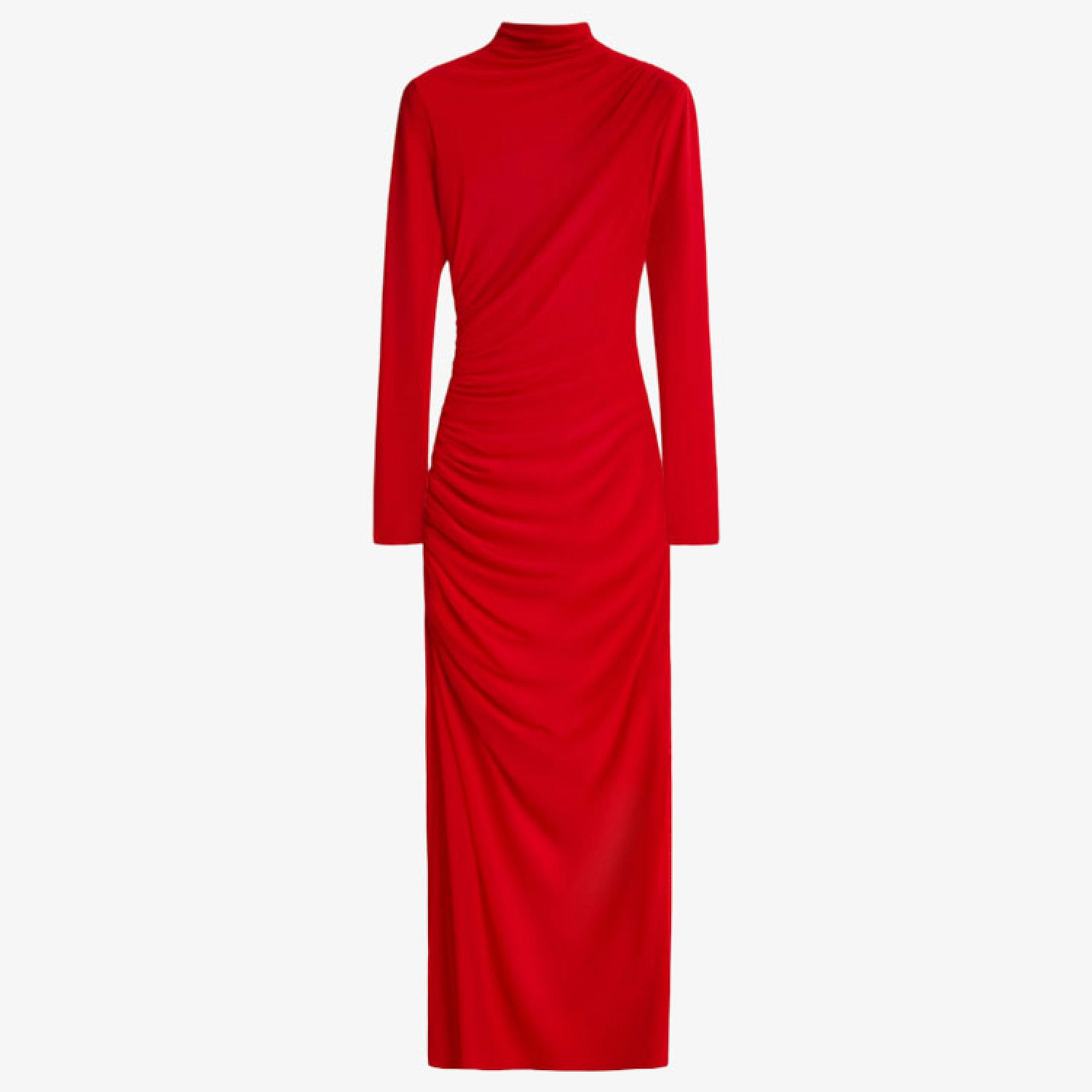 Огненная Лошадь — символ 2026 года по китайскому календарю — намекает: главным цветом всех декабрьских корпоративов станет алый или бордовый. Если готовы поддержать тренд, присмотритесь к ярким жакетам и макси-платьям. Вариант поскромнее, но тоже в тему — аксессуары: алая помада, кепка или носки.