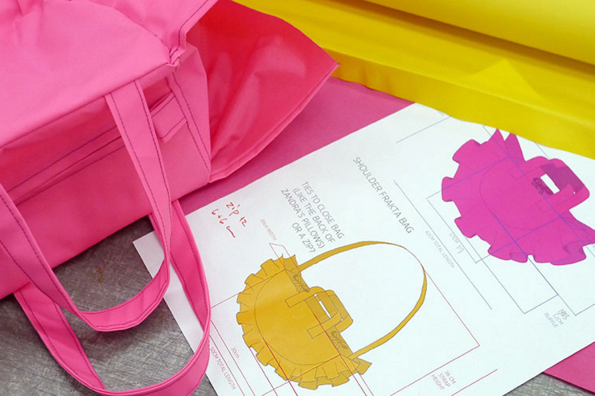 Дизайнер Зандра Роудс преобразила знаменитую сумку IKEA. Теперь она розовая и с рюшами