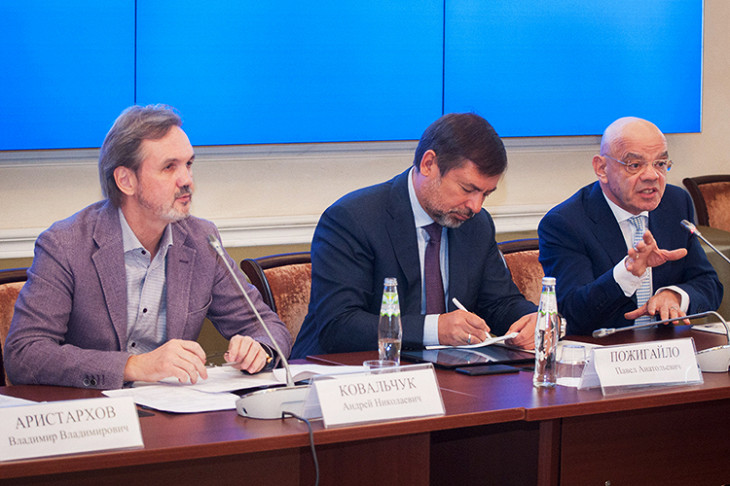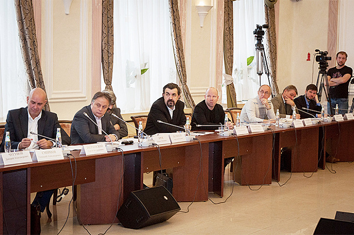 Одним из инициаторов разговора стал Константин Райкин, поэтому за столом собрались преимущественно театральные деятели. Представители Центра им. братьев Люмьер на встрече не появились. В помощь выступающим на столе в папках лежал документ «Основы государственной политики».