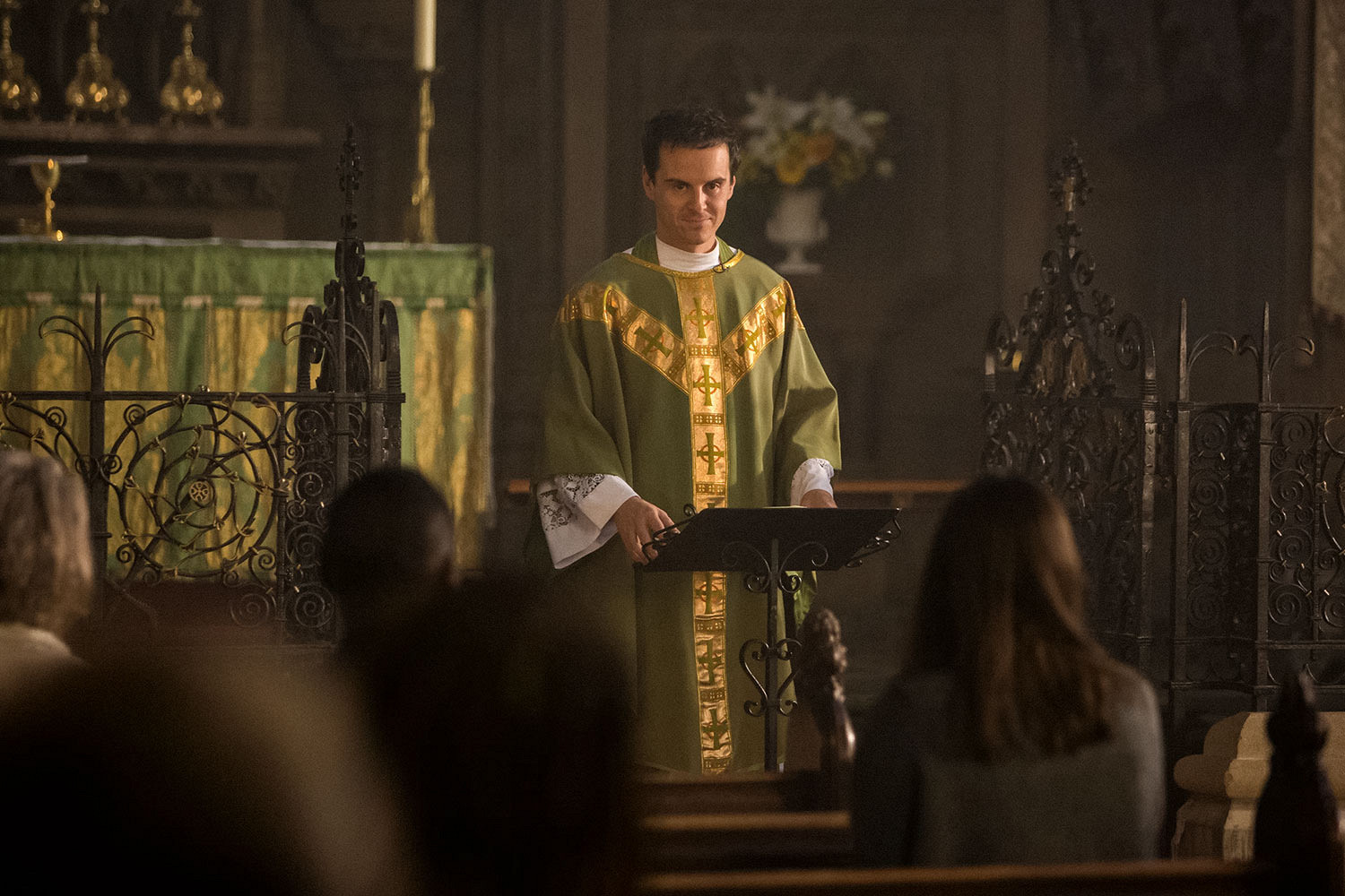 Другой британец, Эндрю Скотт, здесь играет разочарованного в собственных фанатах сайфай-писателя Ли Росса. Экс-либерал воображает всех своих читателей в виде буквальных копий героя Джона Гудмана из «Большого Лебовски». Это чеховское ружье выстрелит в финале, когда мы увидим настоящую фан-базу уже нового романа Росса. Не менее забавно становится от мысли, что исполнивший роль «горячего священника» в «Дряни» актер местного «горячего священника» в исполнении О’Коннора недолюбливает.