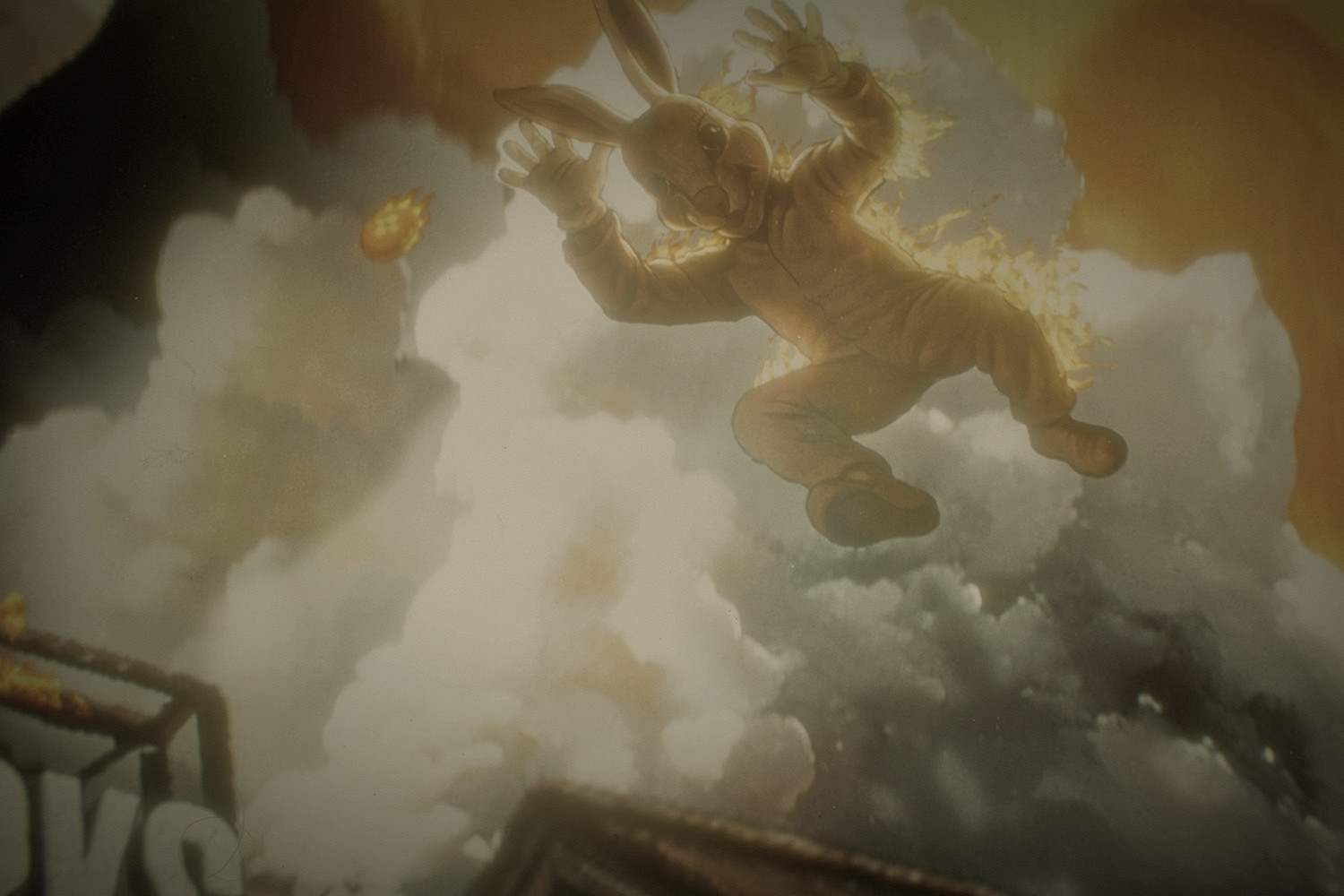 Есть в открывающих титрах и пасхалка, отсылающая, собственно, к Пасхе — точнее к событиям, случившимся в Дерри в пасхальное воскресенье 1906 года. Помните охваченного огнем и летящего в небе пасхального кролика? В романе на Пасху 1906 года владельцы чугунолитейного завода Кичнера организовали охоту «за пасхальным яйцом для всех хороших детей Дерри». Опасные зоны предприятия были перекрыты, и дети беззаботно бегали по заводу, находя яйца то под гигантским самосвалом, то под литейными формами.
