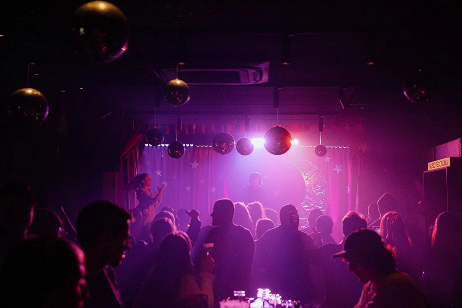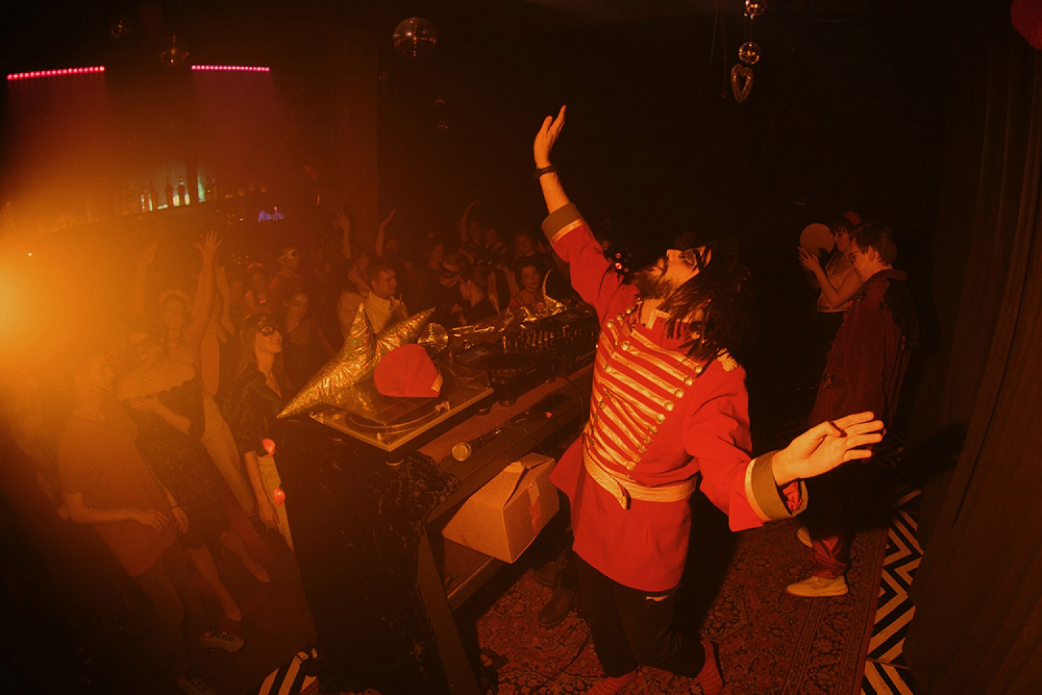 Вечеринка до самого утра с группой «Танцы минус» в роли хедлайнера. Пространство клуба будет разделено на три уникально украшенных зала: «Звездный» — космическая атмосфера и фокус на музыке, «Снежный» — уютная зимняя сказка, «Алый» — классическое ало-золотое пространство с камином.
