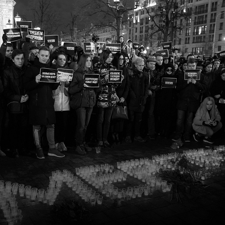 Как на Пушкинской площади прошла акция памяти по погибшим в Кемерове. Фоторепортаж