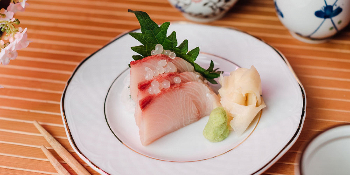 Суши с креветкой, 130 р., гункан с хамачи, 190 р., роллы с тунцом, 270 р., роллы «Филадельфия», 490 р., хэнд-ролл с лососем, 260 р., салат чука, 170 р., маття, 250 р.