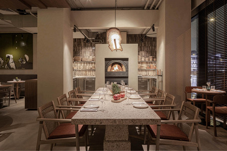 Несмотря на сложносочиненную начинку, самое интересное в равиоли — его размер. Вместо порции конвертиков из пасты вам приносят одно большое равиоло, занимающее почти все дно тарелки. Такое хочется взять не только на пробу, но и ради видео, где жидкий желток растекается по разрезанному тесту, — в ресторане как раз открыли веранду, где солнечного света для красивых кадров особенно много.