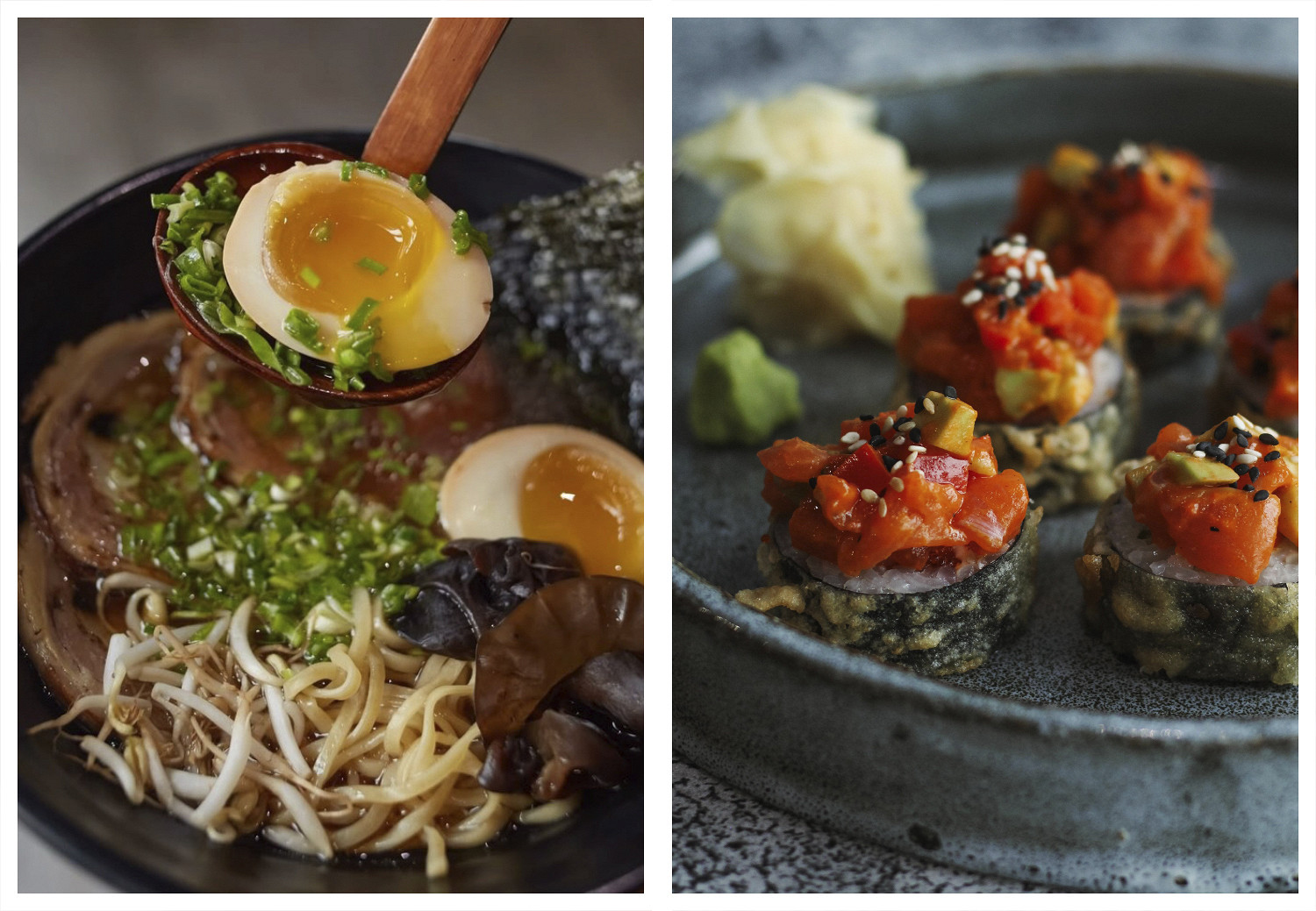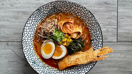Готовят образцовый рамен — с плотным, богатым бульоном и упругой лапшой. Всего в меню семь видов этого блюда: классические сею с курицей или нажористый со свининой, сио с морепродуктами, а также причудливые гибриды вроде лаксы-рамена с густым карри-бульоном или том-ям-рамена.
