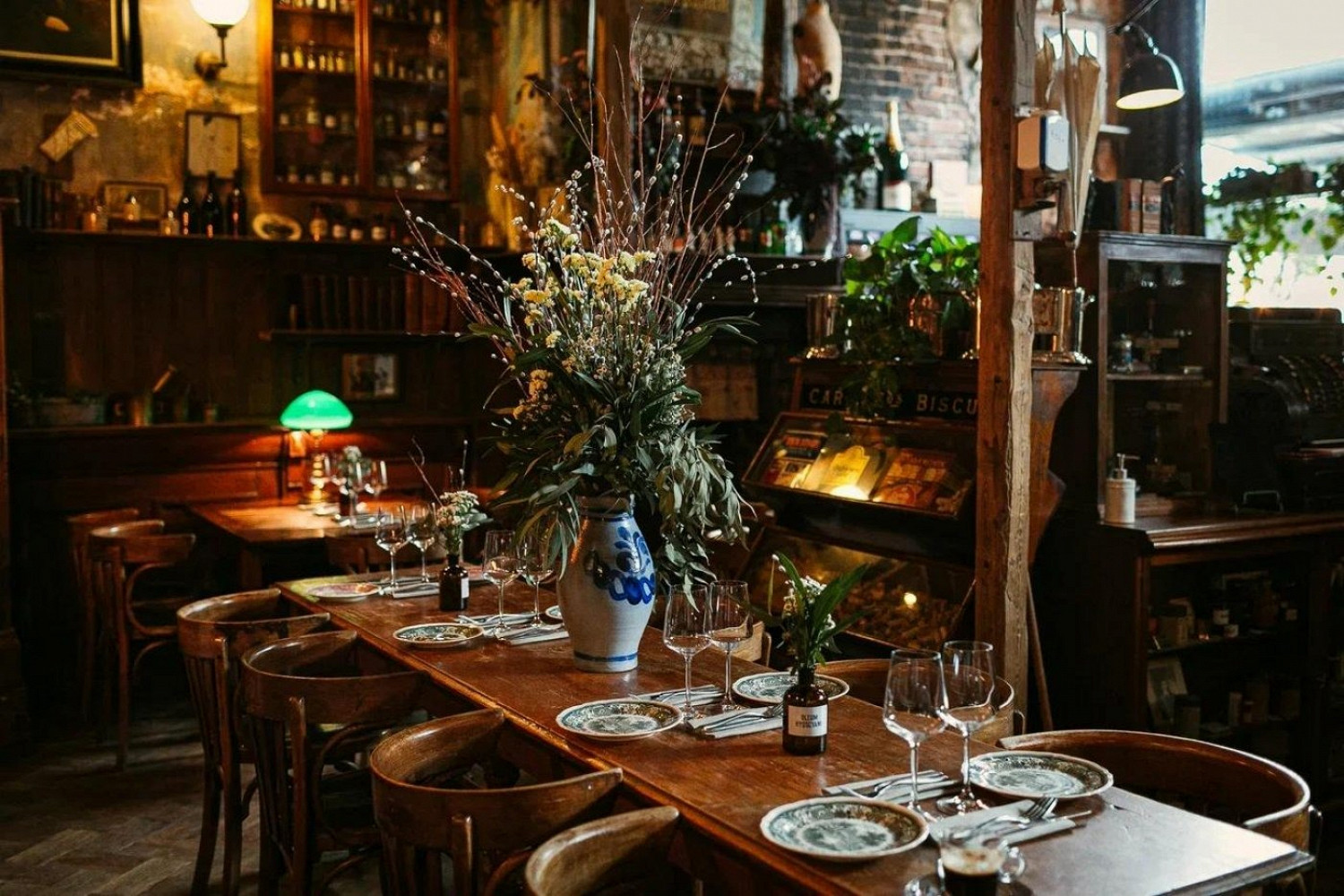 Винный бар с антикварным интерьером в духе французской лавки старьевщика. В меню собрана спокойная средиземноморская классика: луковый суп, ризотто с гребешками, баклажан пармиджано, перцы тоннато и бургер с мраморной котлетой. В барной карте — винная и коктейльная классика вроде негрони, «Маргариты» и аперолей.
