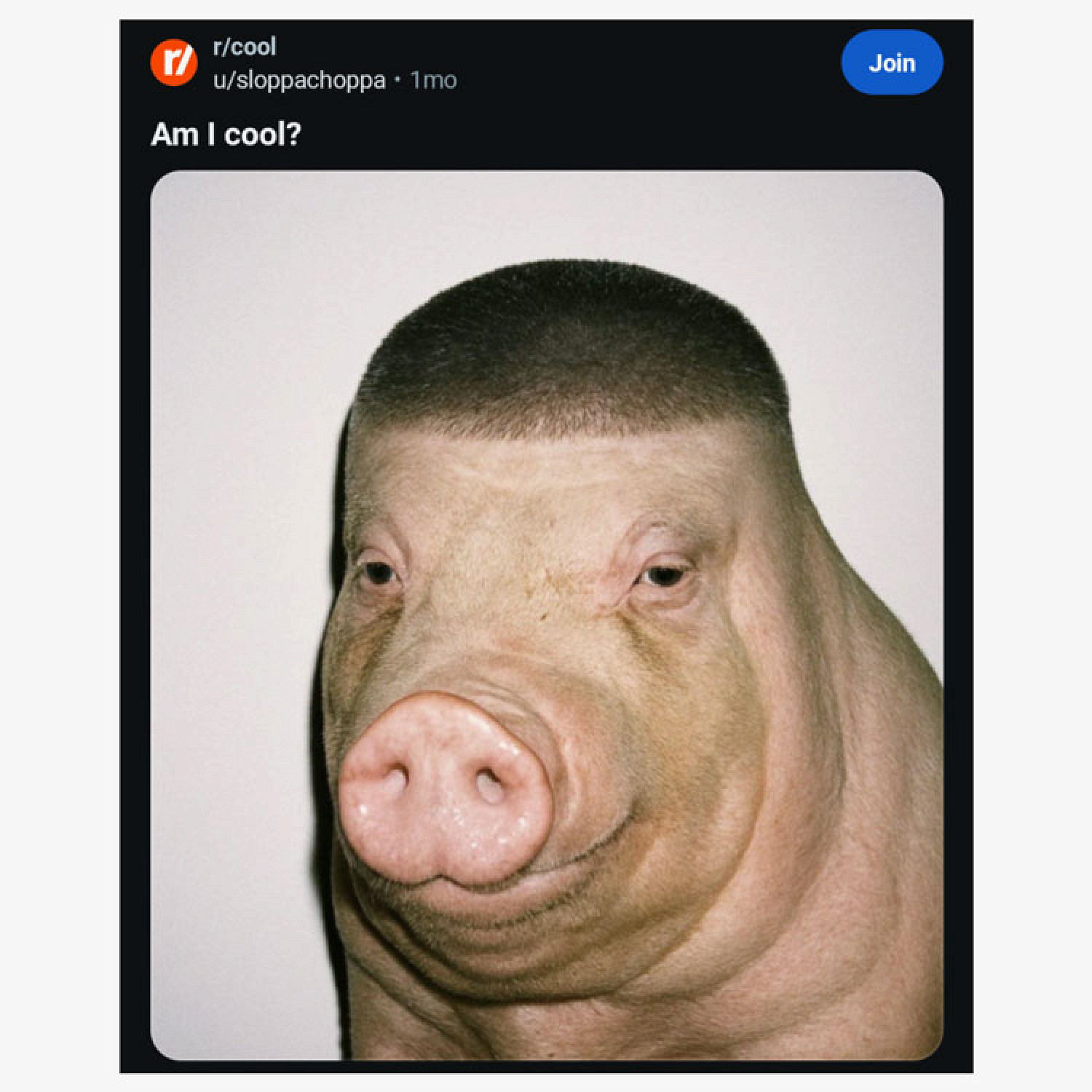 Фотография короткостриженой свиньи (Fade Pig), сгенерированная нейросетью, появилась в начале осени, но завирусилась только в ноябре. В интернете изображение стало ассоциироваться с непривлекательными молодыми парнями, а еще с теми мужчинами, которые обладают хулиганским вайбом или только что сделали неудачную прическу.