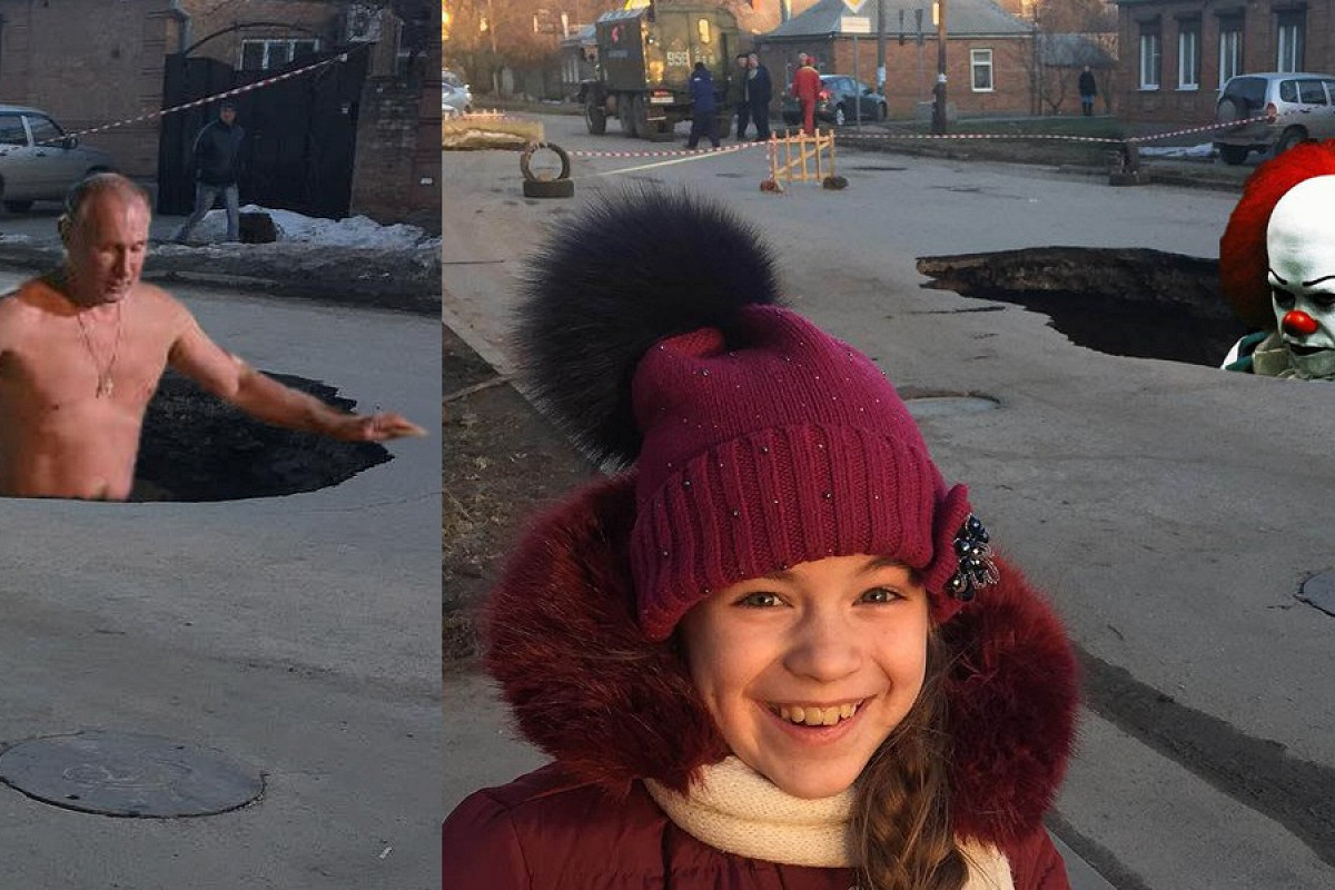 Лучшие фотожабы по мотивам провала асфальта в Таганроге