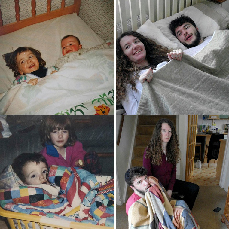 Брат с сестрой воссоздали детские фото к 30-летней годовщине свадьбы родителей