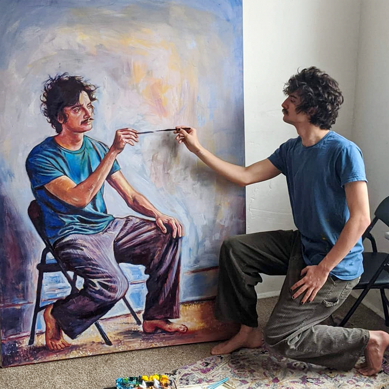 Художник нарисовал себя, а потом нарисовал, как рисует себя. И так пять раз!