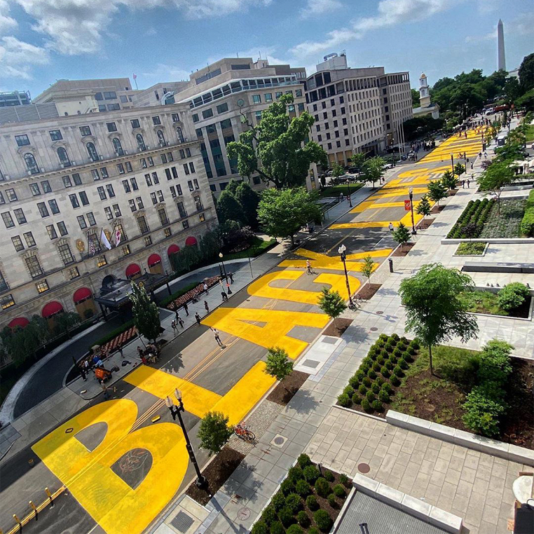 В Вашингтоне появилась огромная надпись Black Lives Matter. Она занимает полтора квартала