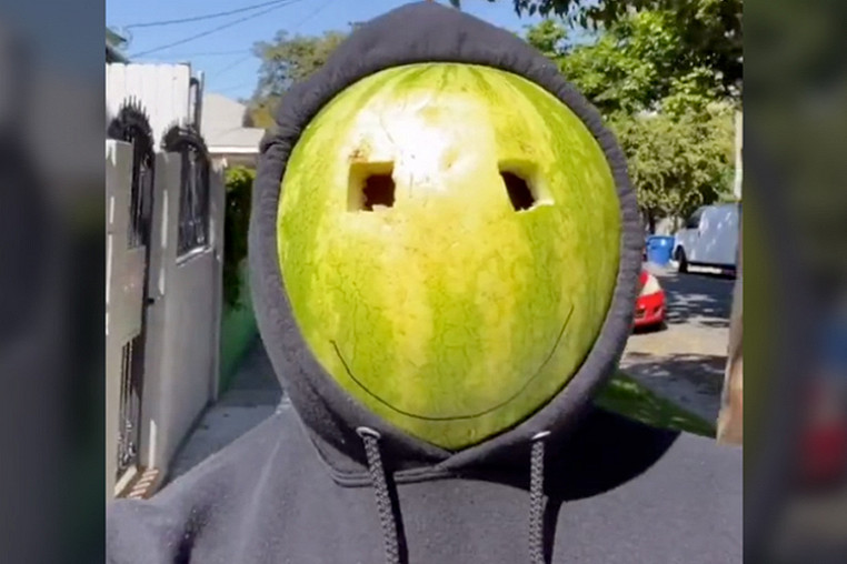 Тиктокер придумал, как быть при дефиците масок — носить на голове арбуз и телевизор