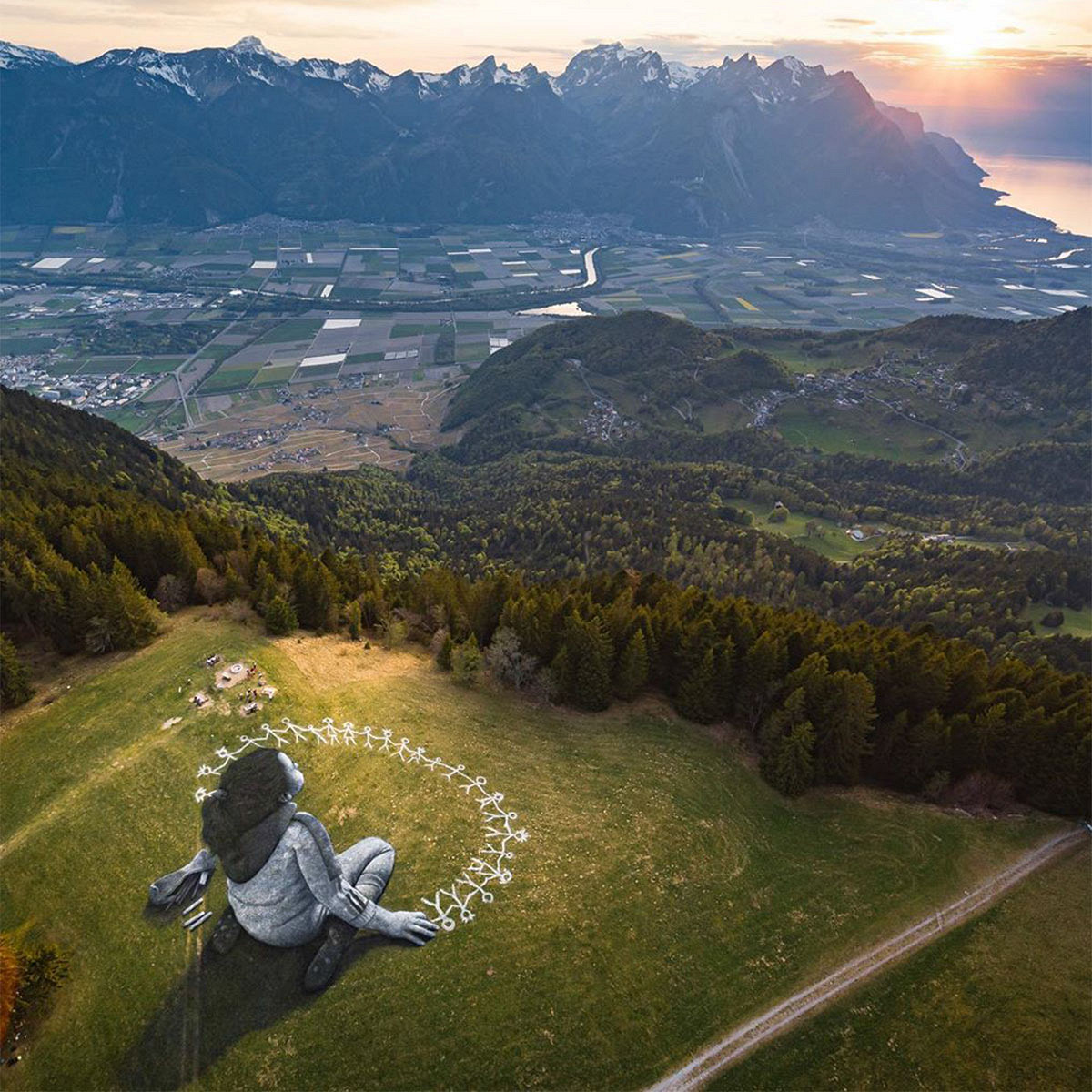 Посмотрите на огромную картину на траве, посвященную посткарантинному периоду