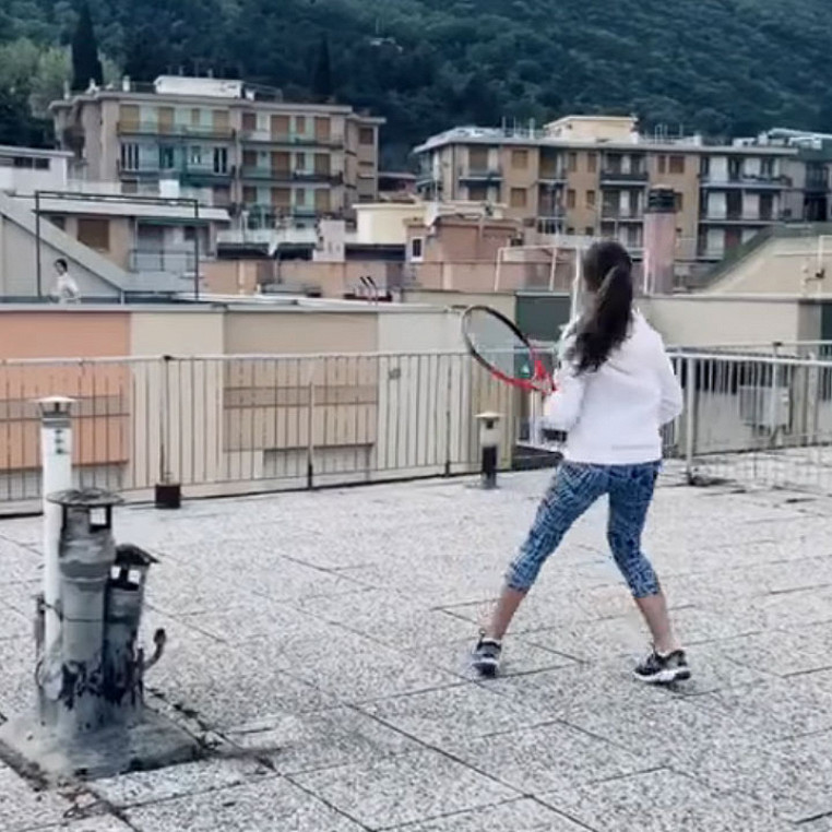 Карантин спорту не помеха: итальянские теннисистки провели игру на соседних крышах