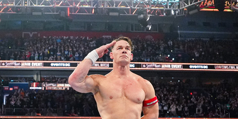 Сина попрощался с публикой и оставил на ринге свою обувь и напульсники. На прощание он отдал салют и поклонился на вершине рампы.