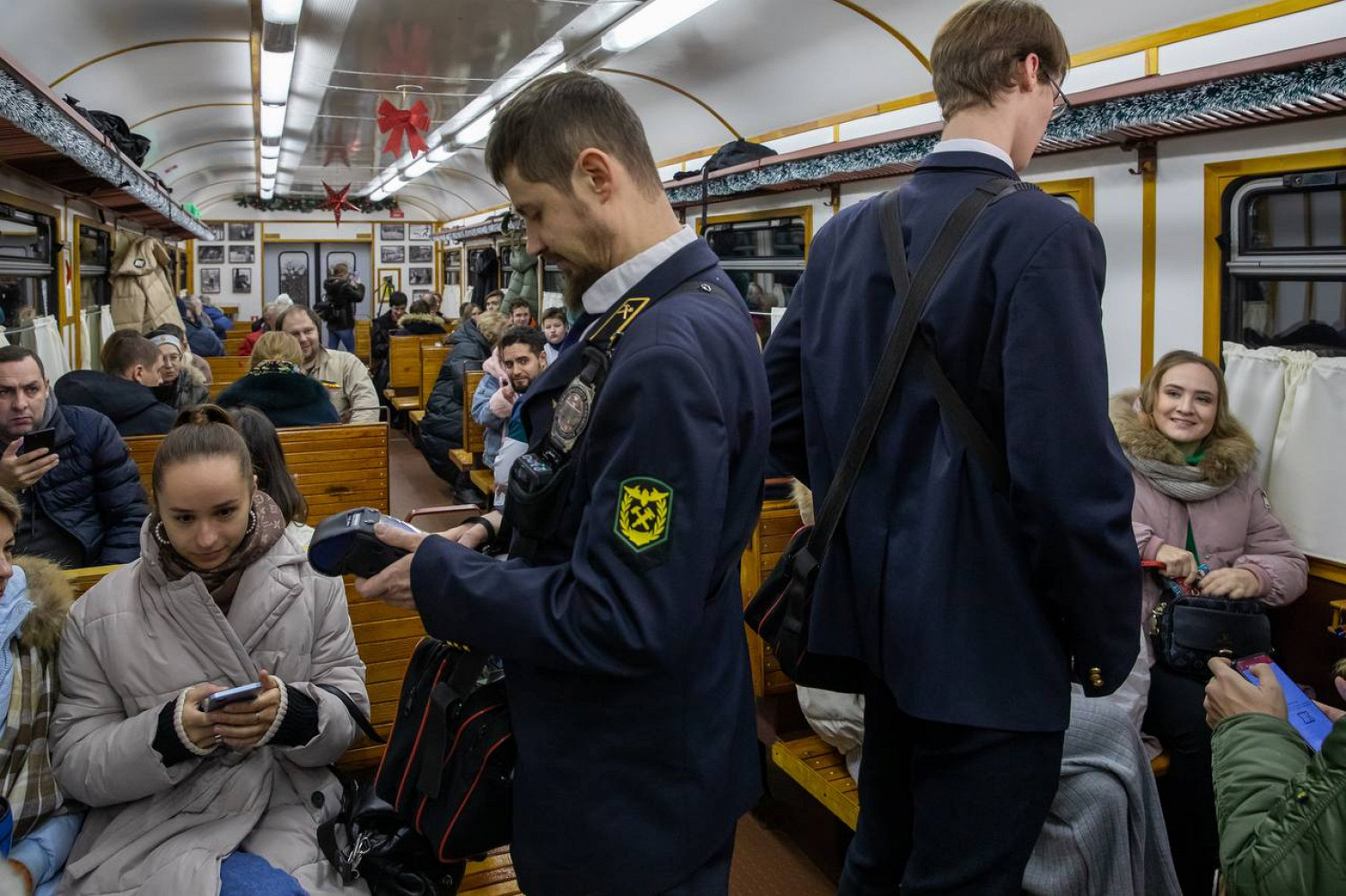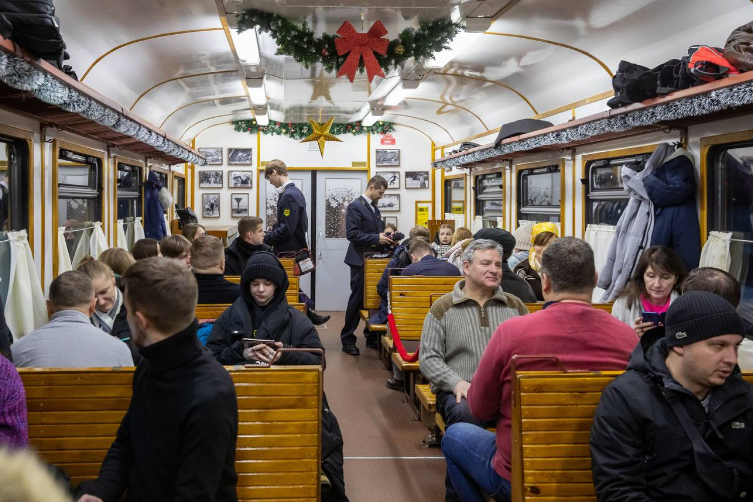 Пассажиров ждет праздничная программа с экскурсией от гида, музыкальным сопровождением и подарками. В гости к путешественникам заглянет Дед Мороз, а для детей приготовят сувениры, чай и пряники.