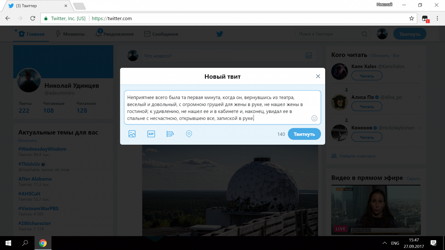 Twitter 26 сентября объявил, что тестирует длинные твиты: вместо 140 в них 280 символов. Руководство соцсети решилось на радикальную меру спустя 11 лет после запуска сервиса.