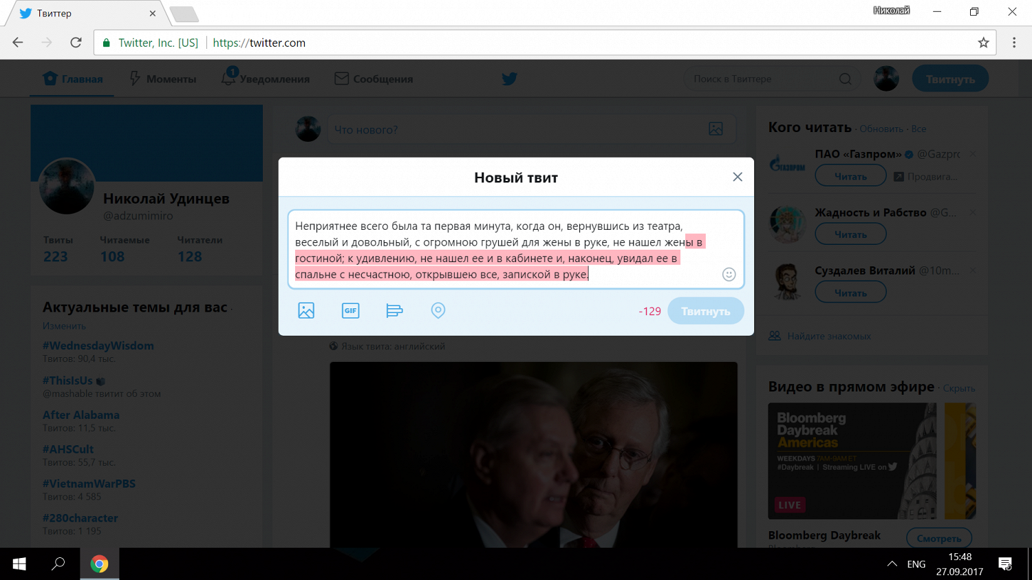 Если длинные твиты не отправляются, попробуйте очистить кэш браузера и файлы cookie. Скрипт отключится, если перейти в другую вкладку или окно — чтобы снова отправлять твиты по 280 символов, нужно перезагрузить твиттер.