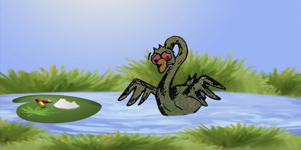 По сюжету мультфильма, лебедь неожиданно находит в пруду наркотики, которые начинает пробовать. Под действием веществ его тело переливается всеми цветами радуги, однако потом приходит «ломка», и птица решает отказаться от наркотиков совсем.