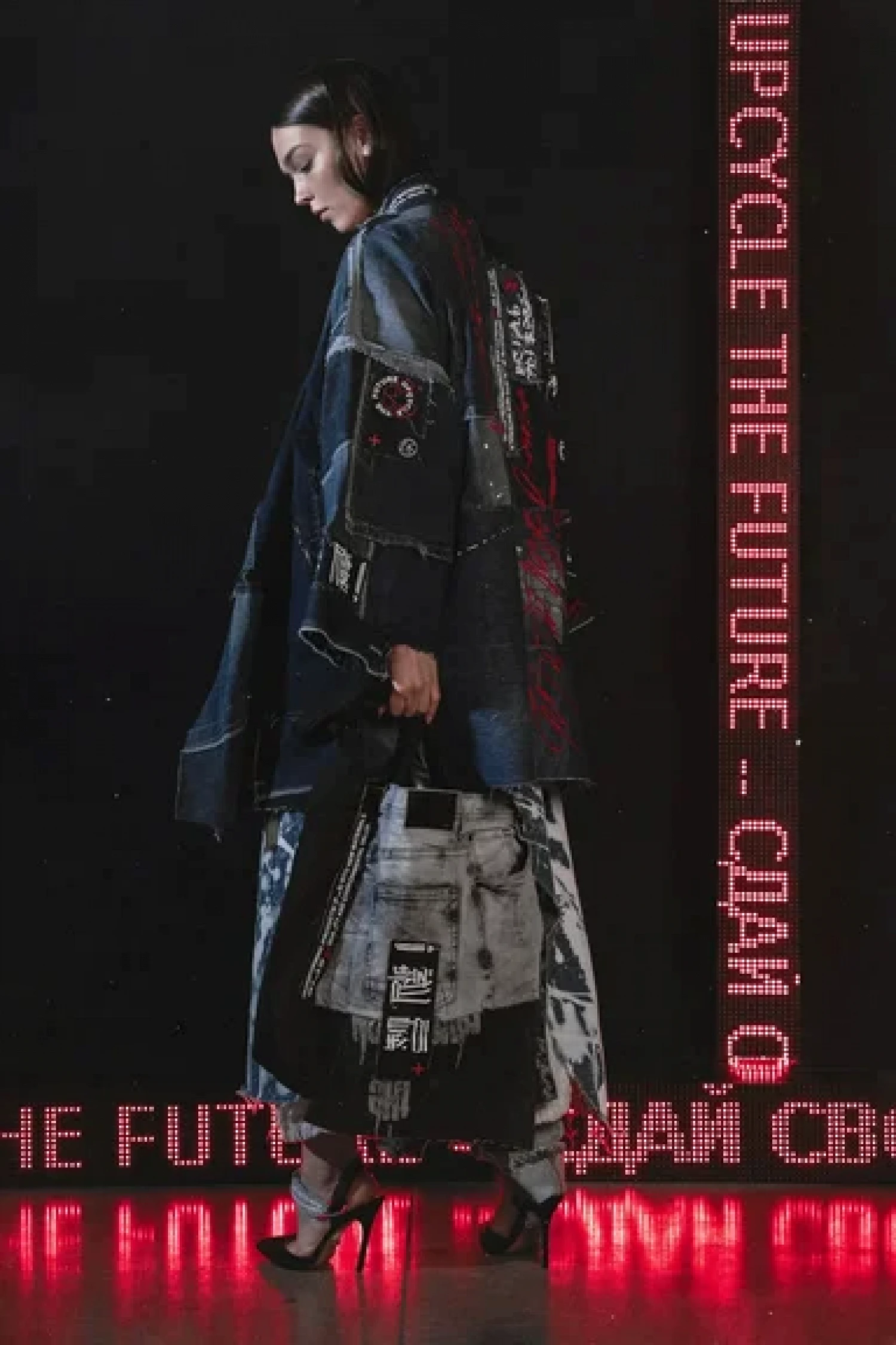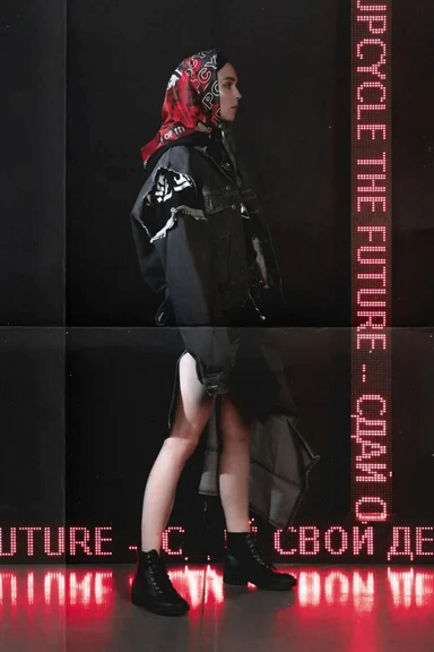 В коллекцию вошли кимоно, куртки, худи, футболки, шарфы, кепки и другие аксессуары. Материалы для них собирали с 18 октября ― на втором этаже универмага установили стенд, куда все желающие могли сдать ненужную джинсовую одежду. За неделю удалось собрать 487 вещей.