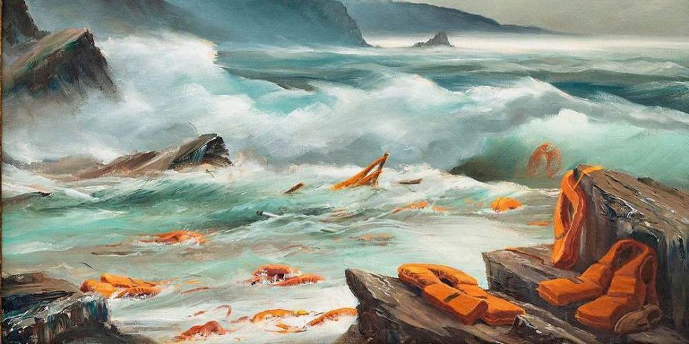 Работа состоит из трех картин, написанных маслом, и посвящена беженцам, которые в 2017 году пытались добраться в Европу через Средиземное море на подручных плавательных средствах. Удалось это не всем, многие погибли.