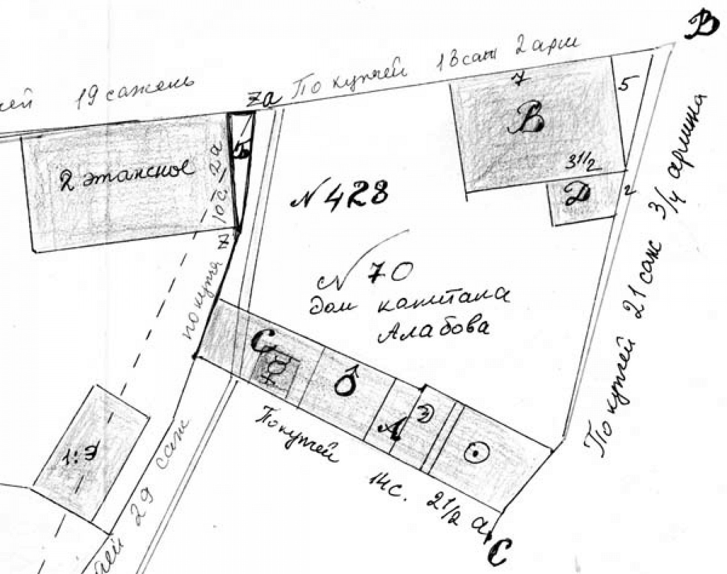 В 2018 году «Архнадзору» удалось выяснить, как именно появилось это пространство. В 1829 году некий капитан Алабов купил у мещанина Дьяконова пустовавший после пожара 1812 года участок земли. Но оказалось, что границы, указанные в купчей, пересекаются с участком, записанным на купчиху Кондратьеву. По всей видимости, стороны конфликта так и не смогли решить, кому должен принадлежать спорный участок, и в итоге он не достался никому, а вернее, стал незапланированным общественным пространством.