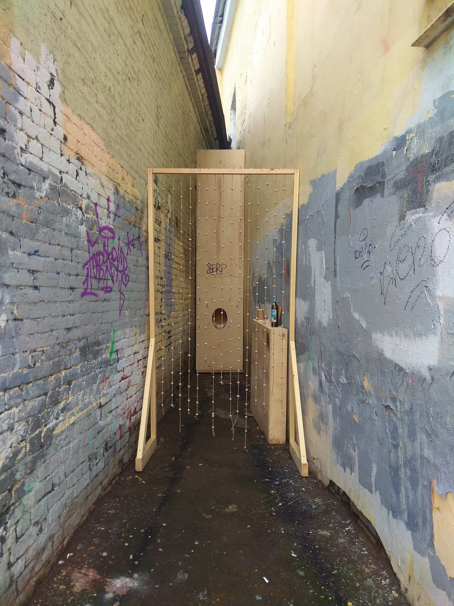 Между домами 4, строение 1, и 2, строение 6, в Хохловском переулке — в углу, который уже более века используется для справления нужды, — появился новый арт-объект. Неизвестные разместили там деревянный писсуар, отгороженный от улицы занавеской, а рядом поставили полочку с ароматическими палочками, пепельницей и сборником лучших комедий Пьера Бомарше.