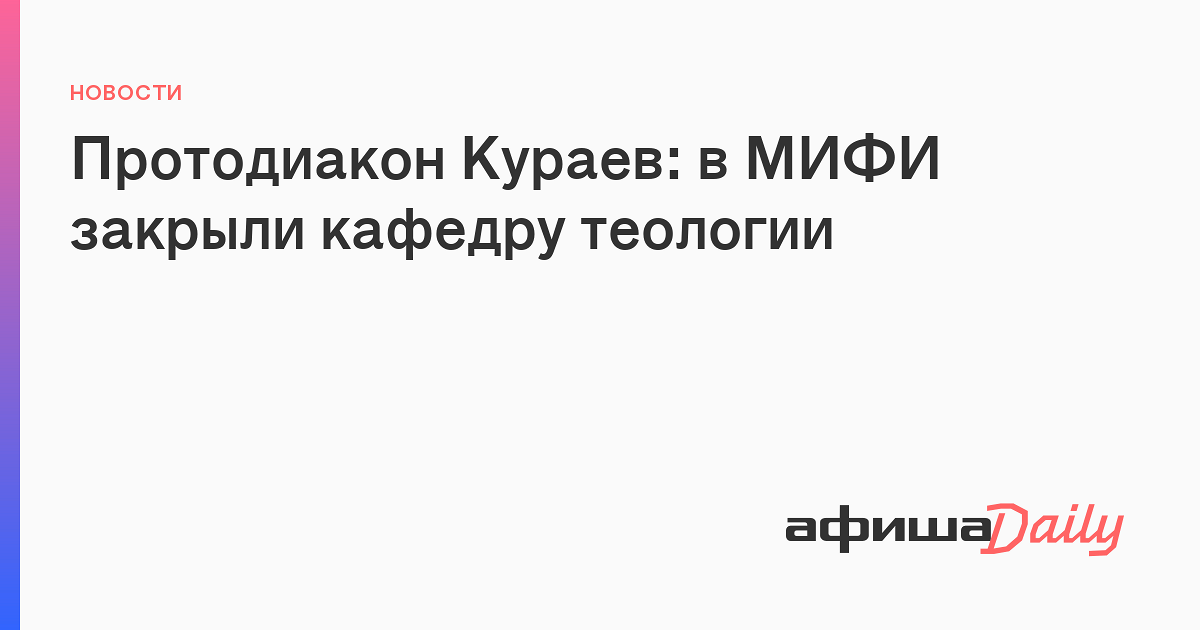 В Московском инженерно-физическом институте (НИЯУ МИФИ) упразднили кафедру теологии. Об этом сообщил в фейсбуке протодиакон Андрей Кураев.