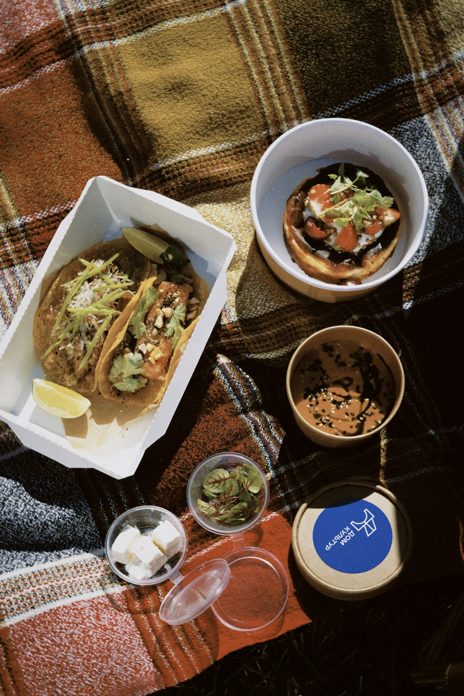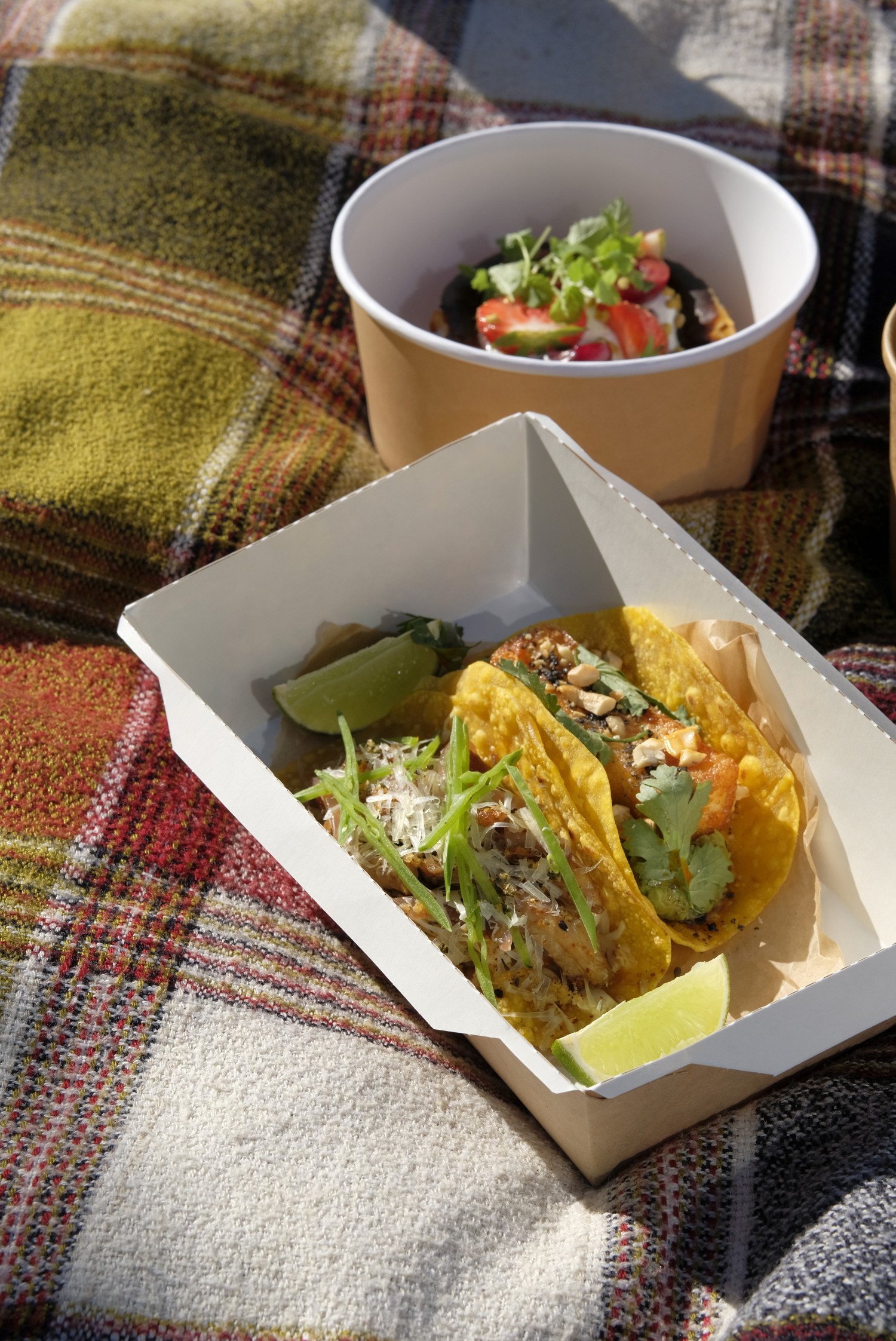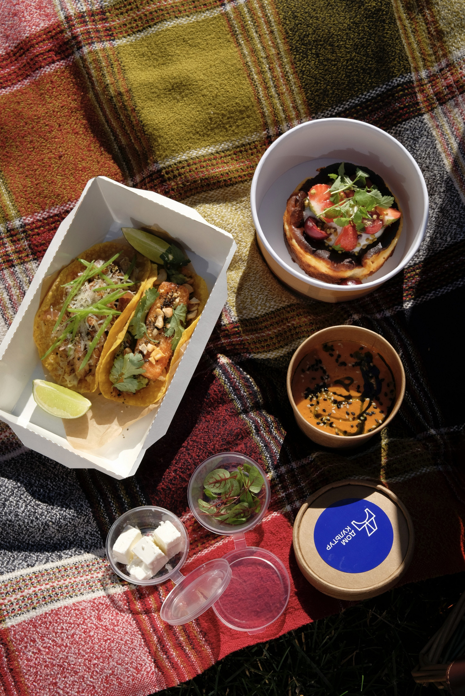 За сет-меню ответственен шеф-повар «Дома культур» Давид Александров. В набор для «Пикника с „Афишей“» вошли пара тако на выбор (с халуми в панировке с соусом гуакамоле или с томленой уткой и трюфельным демиглясом), баскский чизкейк и гаспачо на узбекских томатах. Среди напитков — красный чай, заваренный методом колд-брю, с добавлением топинамбура или премикс для беллини из красного нектарина с маракуйей (смешивается с игристым).