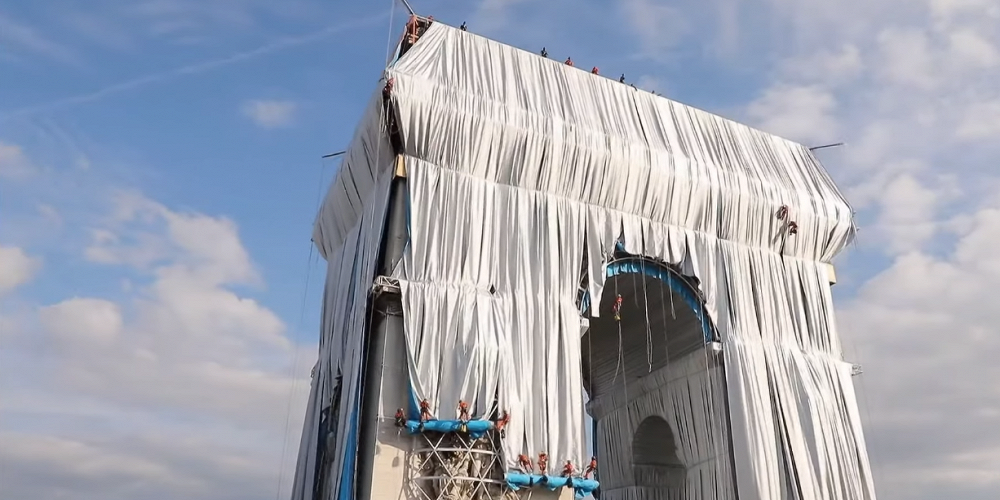 Полностью обернутой в серебристо-голубую ткань арка станет к 18 сентября. Для ее драпировки потребуется 25 тыс. квадратных метров полотна — это в четыре раза меньше, чем нужно было для «упаковки» Рейхстага в 1995 году. Занавешенной арка останется до 3 октября.