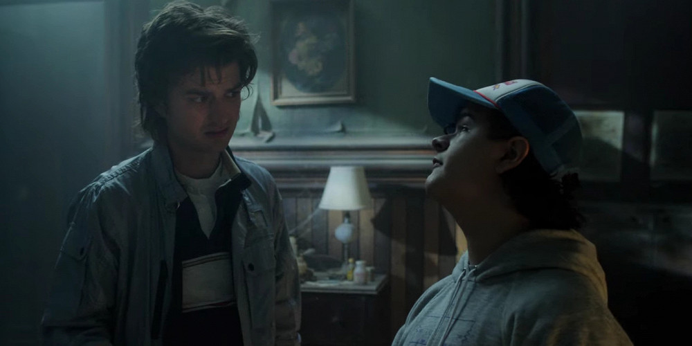 После этого кадр сменяется на героев «Очень странных дел», которые оказываются в этом же доме, но спустя пару десятилетий. Здание все еще кишит странностями.