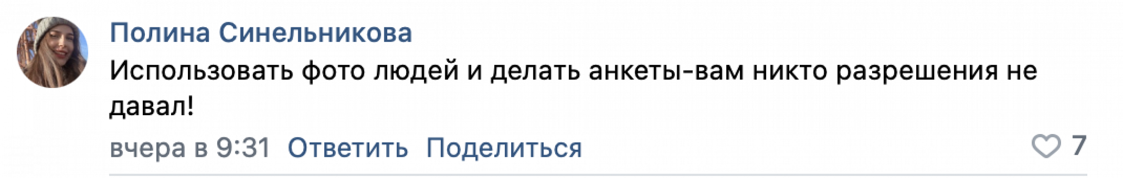 Варя Григорьева рассказала, что при составлении аккаунта сервис разместил ее личные данные, разрешение на использование которых она не давала.