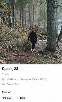 Некоторые отметили, что у них в анкете появились теги «курение» и «вейп». Фотографий с сигаретами или испарителями на их страницах при этом не было.