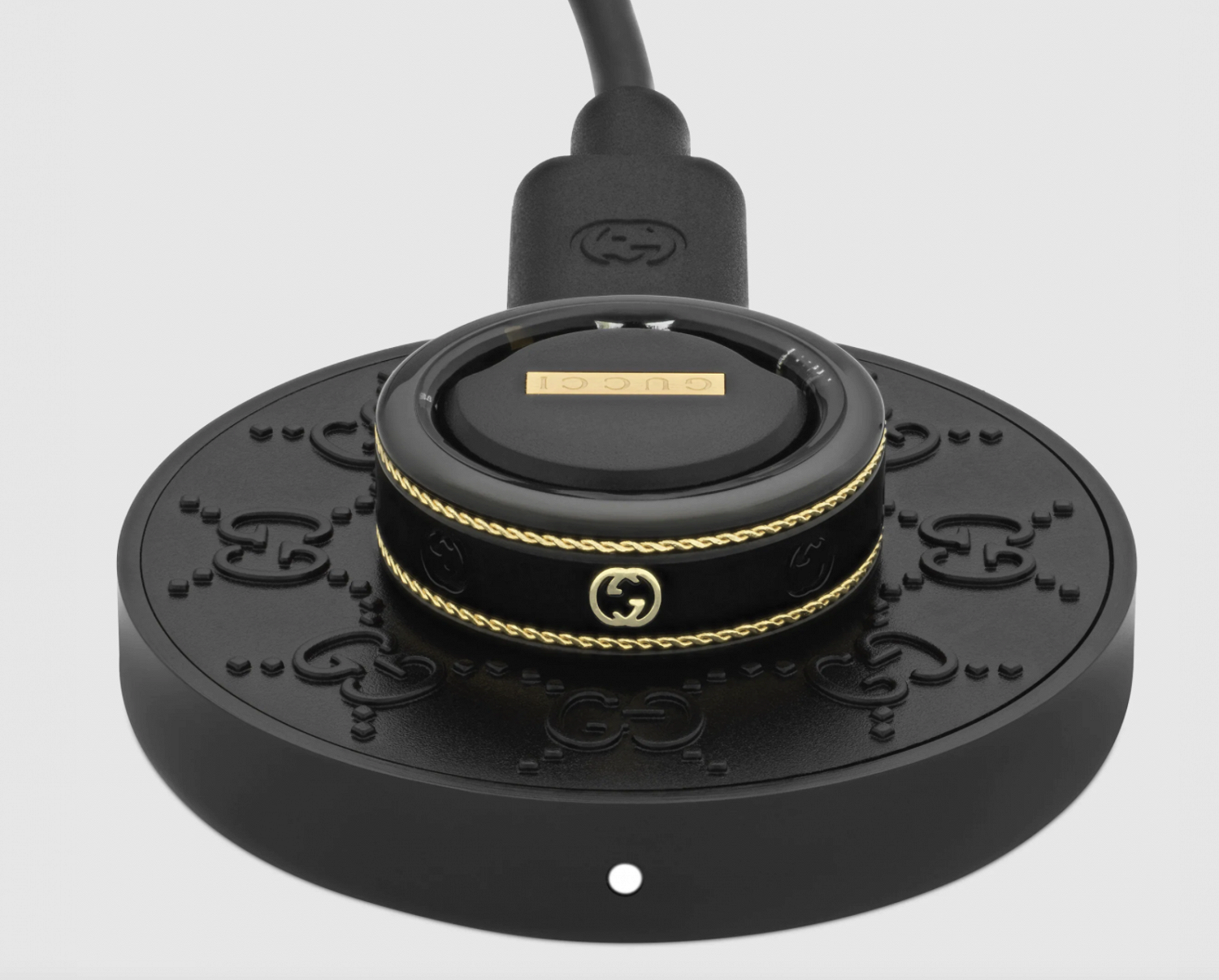 В комплекте к кольцу также идет зарядная док-станция, которая выполнена в черном цвете и декорирована монограммами Гуччо Гуччи. Одной зарядки хватает на 4–7 дней. Стоит такое кольцо 950 долларов (59,8 тыс. рублей по текущему курсу).