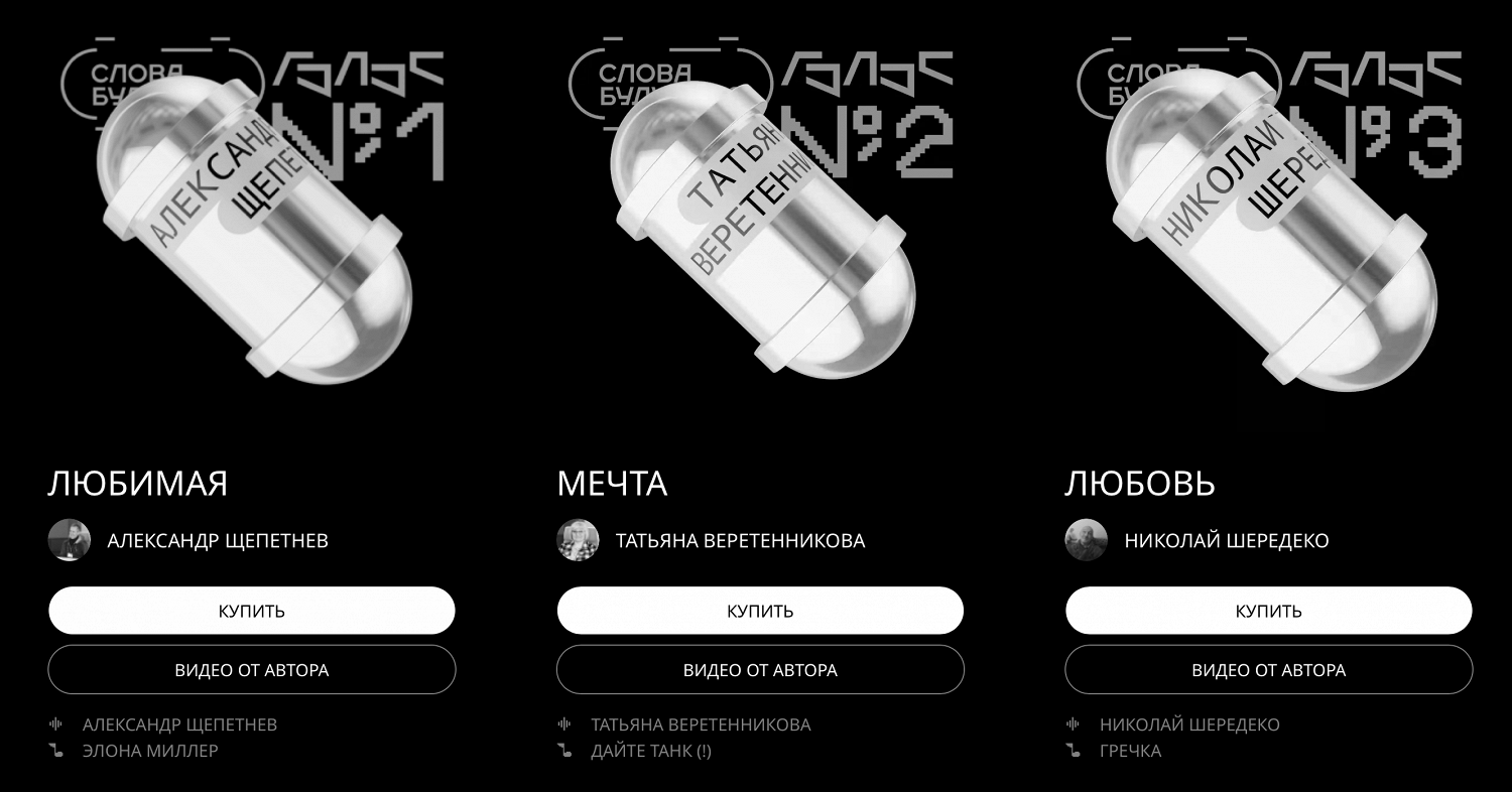 Проект получил название «Слова будущего». В нем приняли участие российские музыканты — Гречка, Элона Миллер, Charusha, «Дайте танк (!)» и Anacondaz.
