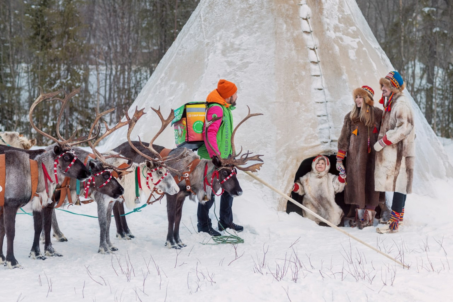 Курьер «СберМаркета» впервые доставил заказ в настоящую саамскую деревню в Мурманской области. Ради этого ему пришлось ехать по лесу на оленьих упряжках десятки километров, сообщили «Афише Daily» представители сервиса доставки продуктов.