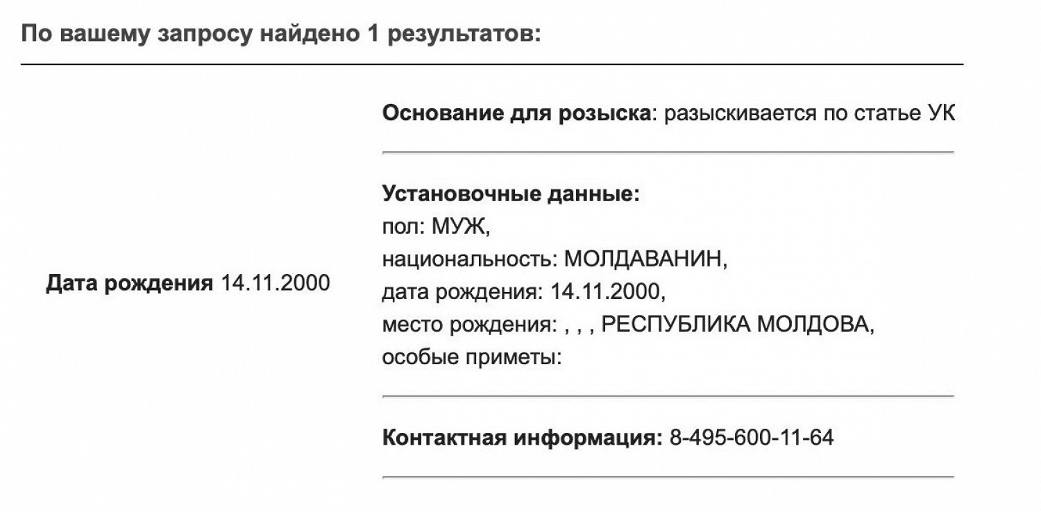 В базе сказано, что Некоглая разыскивают по уголовной статье. Ранее на него завели дело по статье 128.1 УК РФ за клевету в адрес главы Лиги безопасного интернета Екатерины Мизулиной.