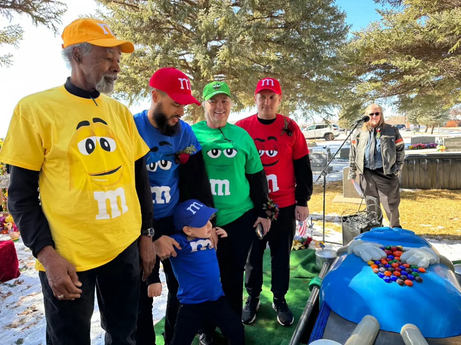 Гроб Гэйли выполнен в виде большой синей конфеты M&M’s с несколькими конфетами поменьше, на которых отпечатаны имена ее детей. На похоронах близкие почившей также были одеты в мерч бренда.