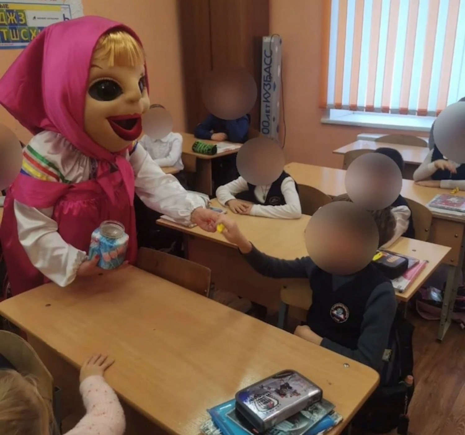 В сельскую школу в Кемеровской области пришла аниматор в ростовом костюме Маши. Ее фото разлетелись по сети, и кукла напугала пользователей сети.