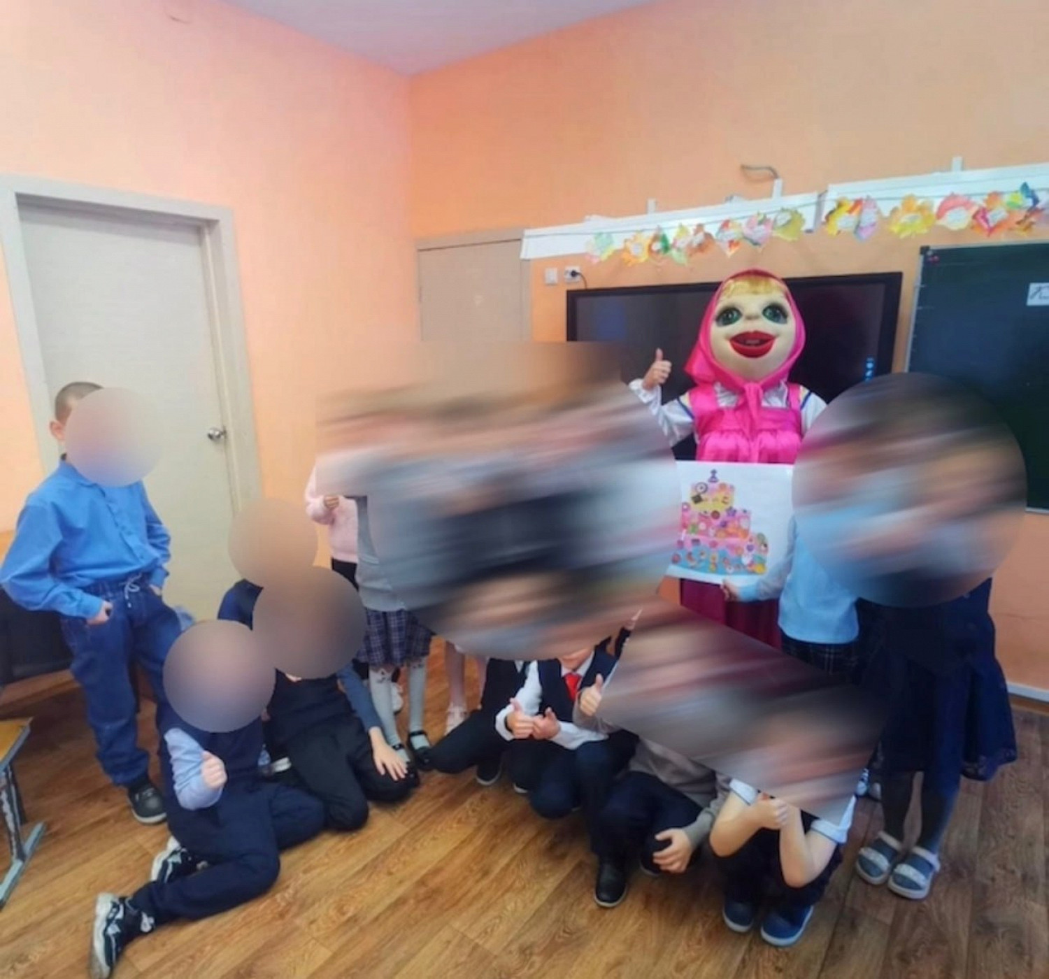 Аниматор пришла в учебное заведение в селе Старопестерёво Беловского округа на праздник в честь дня рождения Маши из мультфильма «Маша и Медведь». Она провела урок вместе со школьниками младших классов и раздала конфеты. Фотографии события появились в паблике «Инцидент Кузбасс».