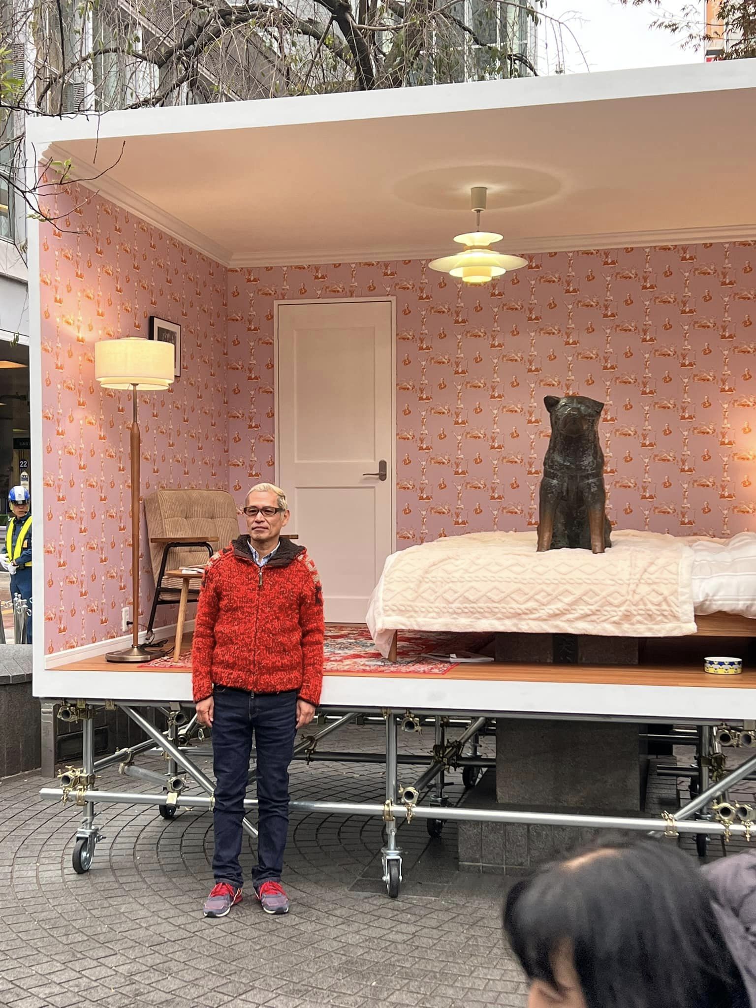 Статуя Хатико перед входом на токийскую станцию «Сибуя» обзавелась художественной инсталляции в виде жилой комнаты, сообщает The Japan Times. Выставка приурочена к 100-летию со дня рождения знаменитого пса, ждавшего своего хозяина.