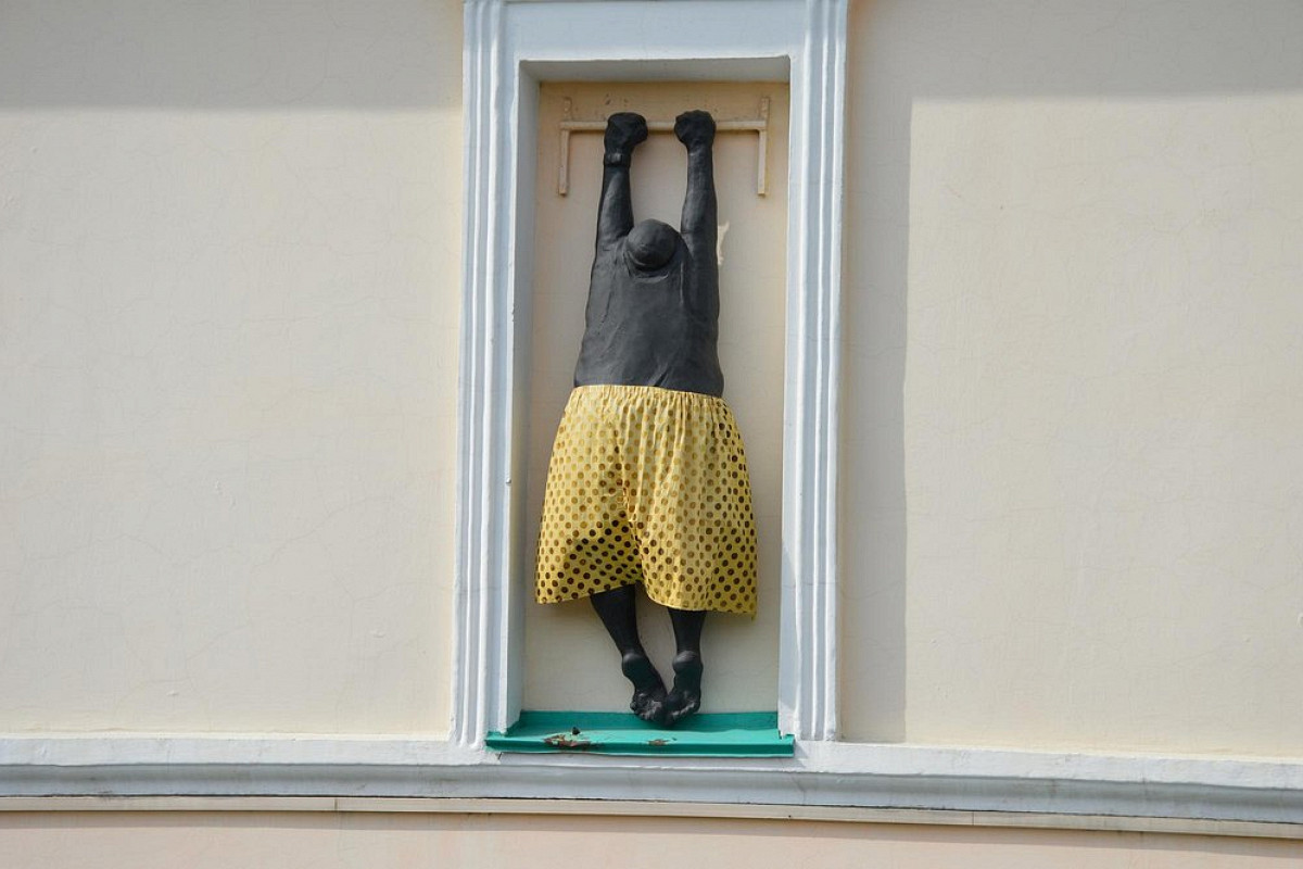 В Томске с фасада Музея истории города убрали «Памятник любовнику». По словам представителей администрации учреждения в разговоре с «Газетой.ру», скульптуру мужчины в семейных трусах, висящего на карнизе над тротуаром, сняли, потому что концепцию тяжело объяснить детям.