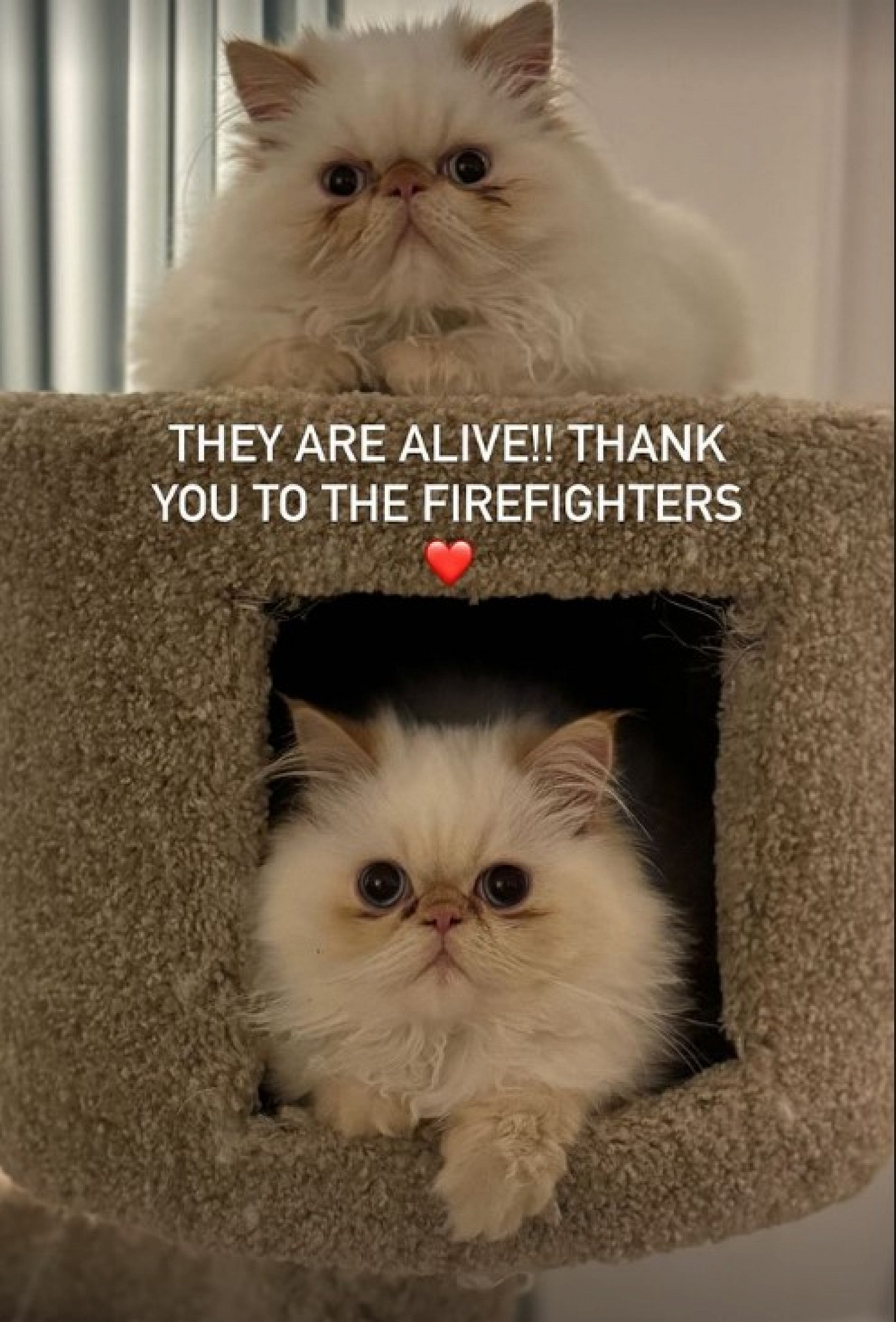 Актриса и модель Кара Делевинь опубликовала снимки со своими кошками, которых удалось спасти из пожара в ее доме. У особняка в Голливуде обрушилась крыша.