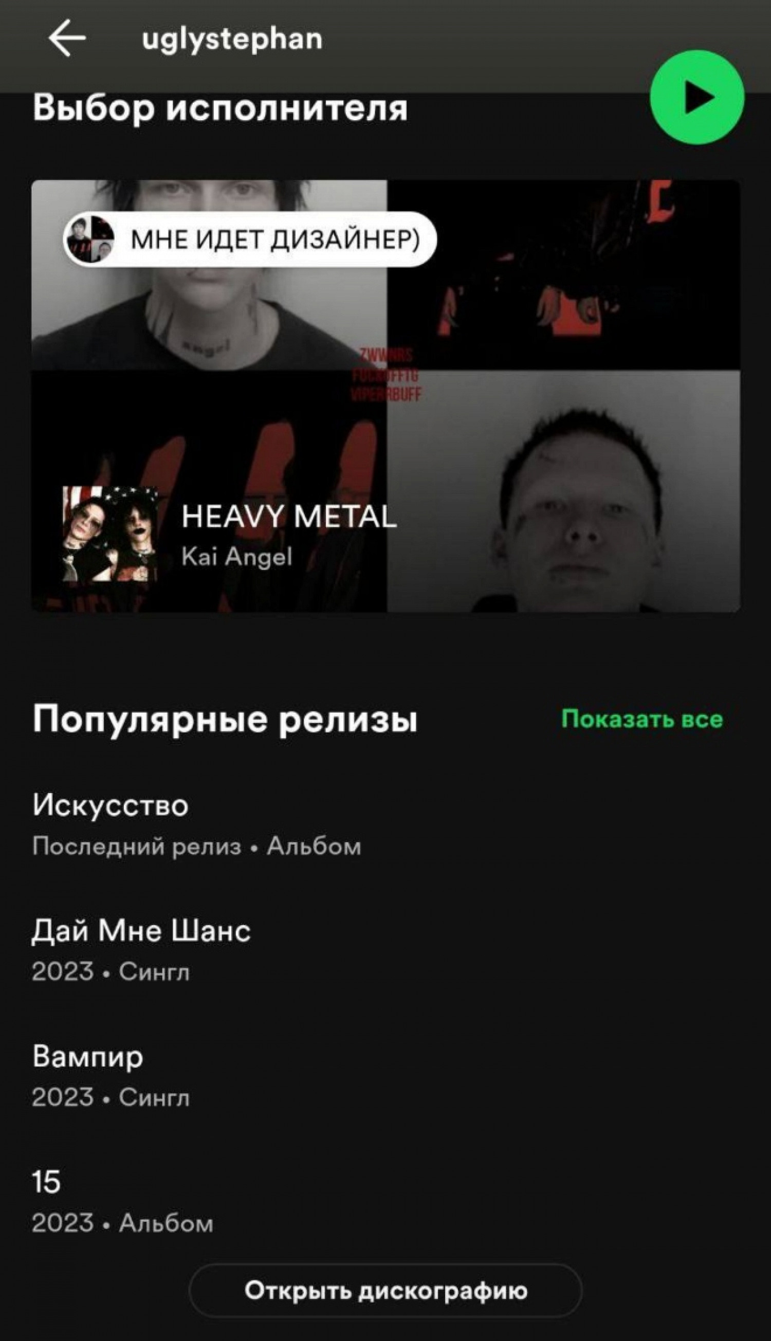 Взломщики поменяли фотографии на страницах на изображения дуэта Viperr и поставили альбомы Kai Angel в раздел «Выбор исполнителя», который показывается в профиле музыкантов перед их дискографией. Также в описания страниц они поставили ссылки на свои телеграм-каналы.